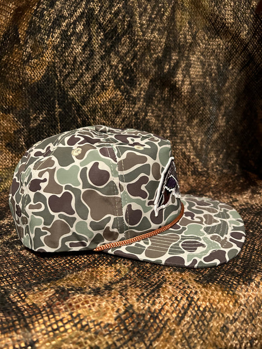 Mallard duck patch on a Jungle Camo Rope brim SnapBack Hat