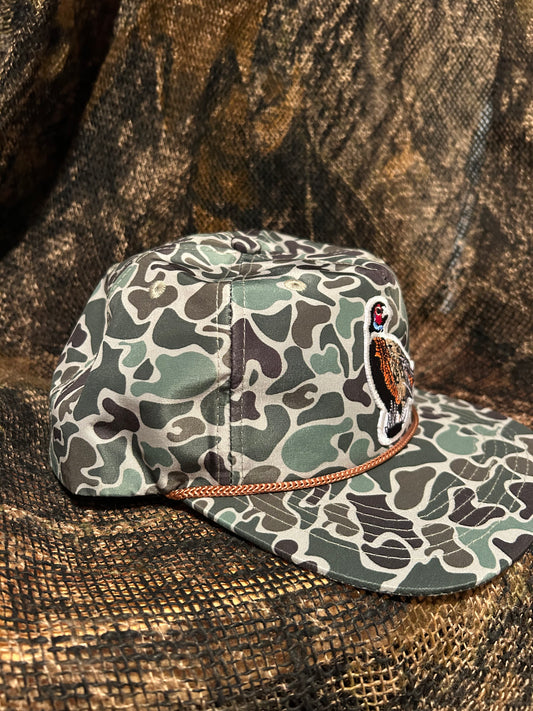 Pheasant hunting rust jungle camo rope brim SnapBack hat
