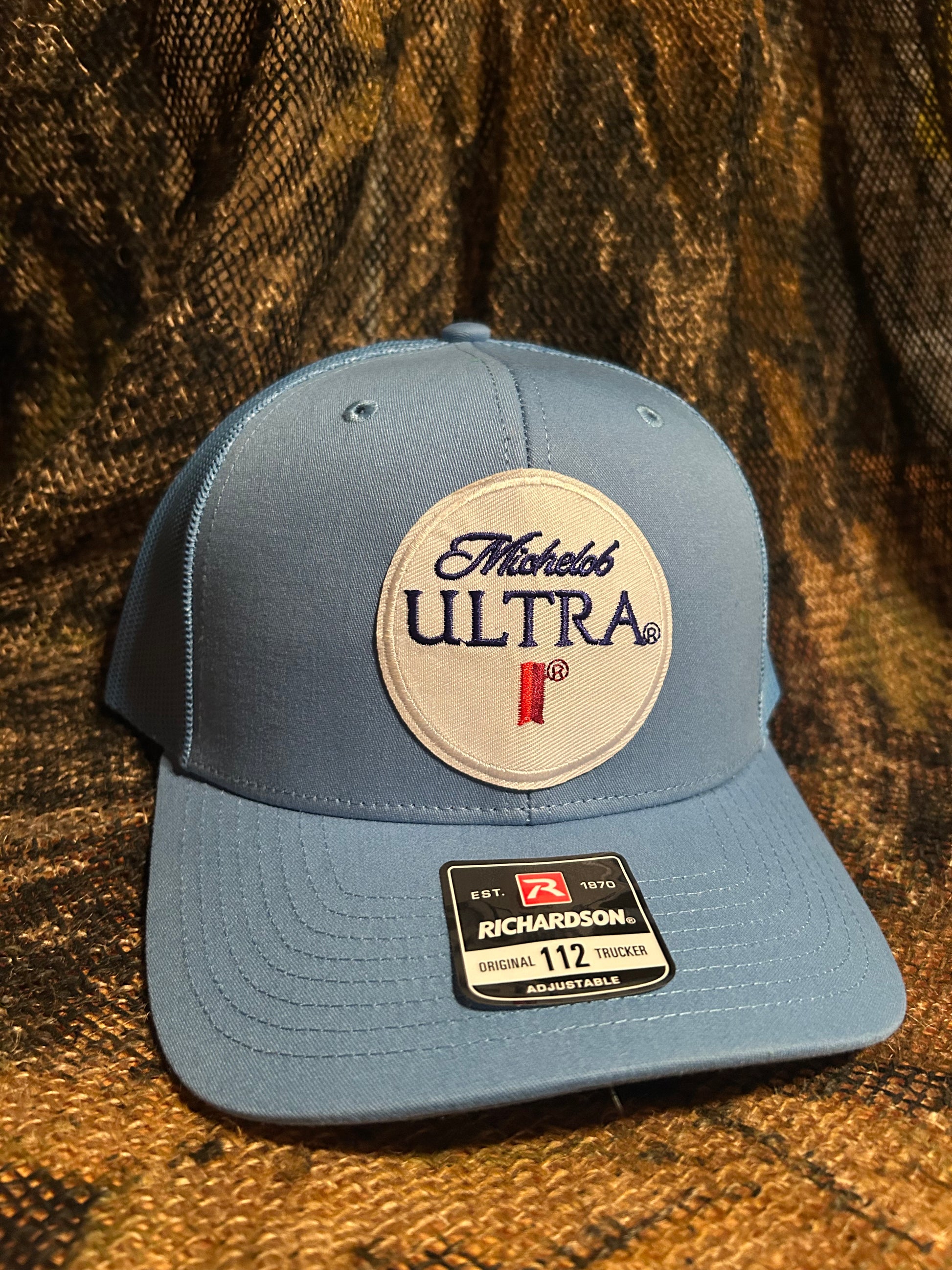 Michelob Ultra baby blue Richardson 112 trucker hat