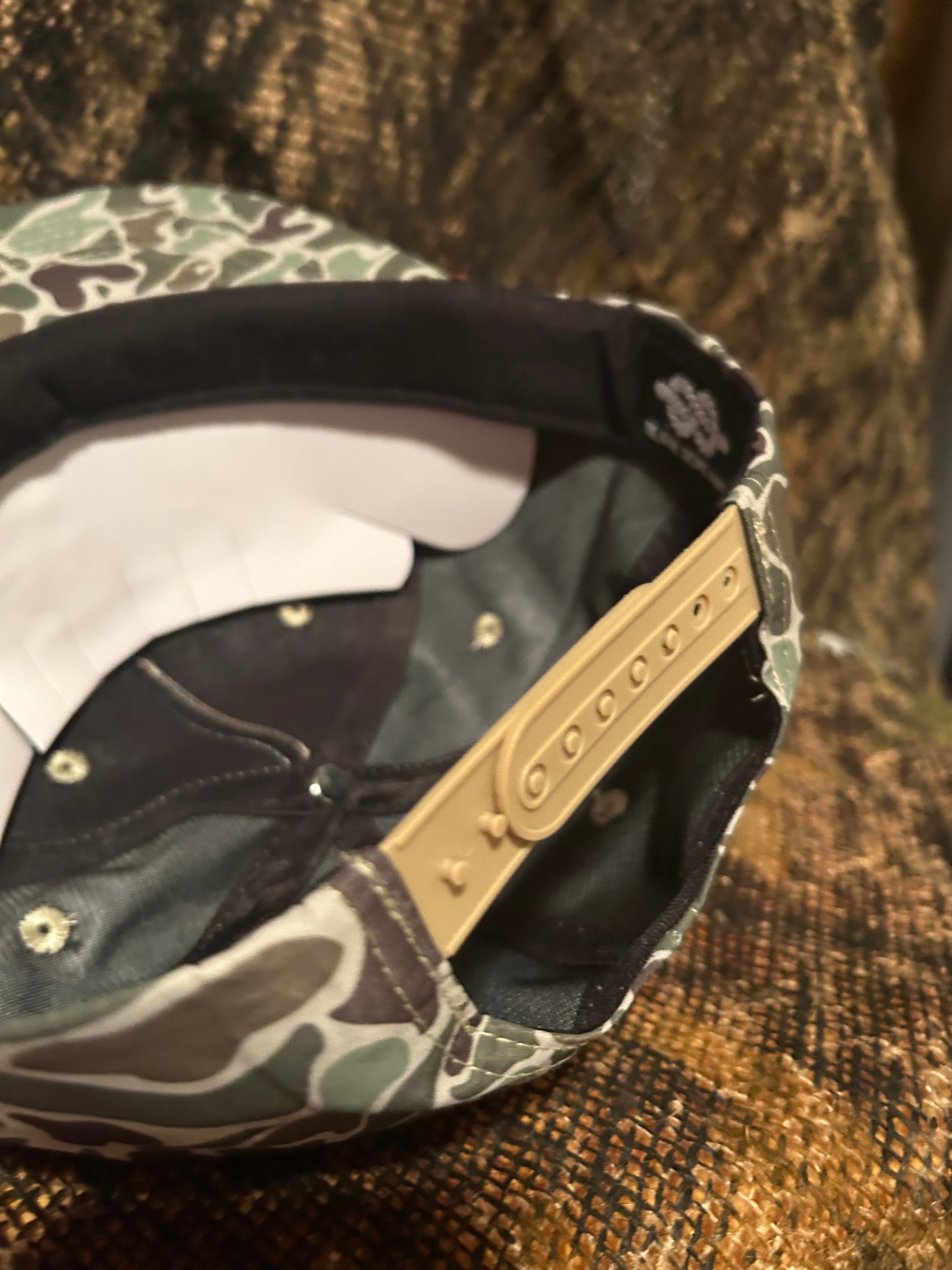 STIHL patch on a jungle Camo ropebrim SnapBack hat